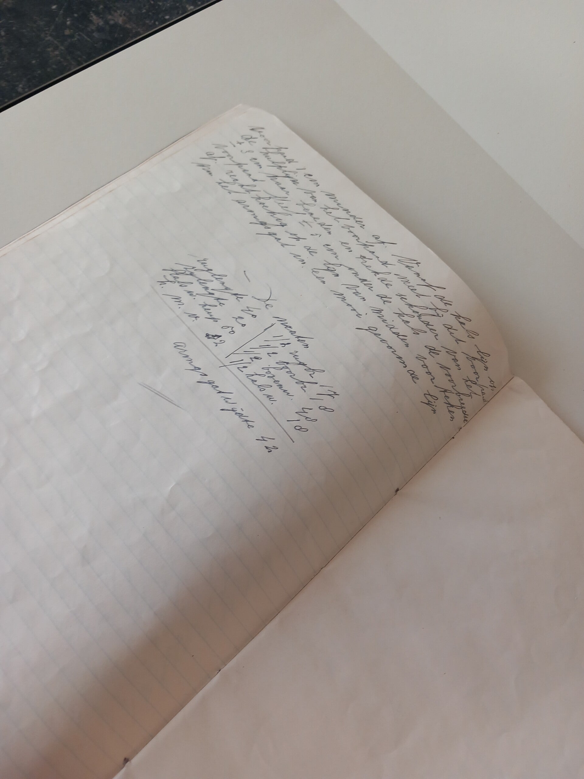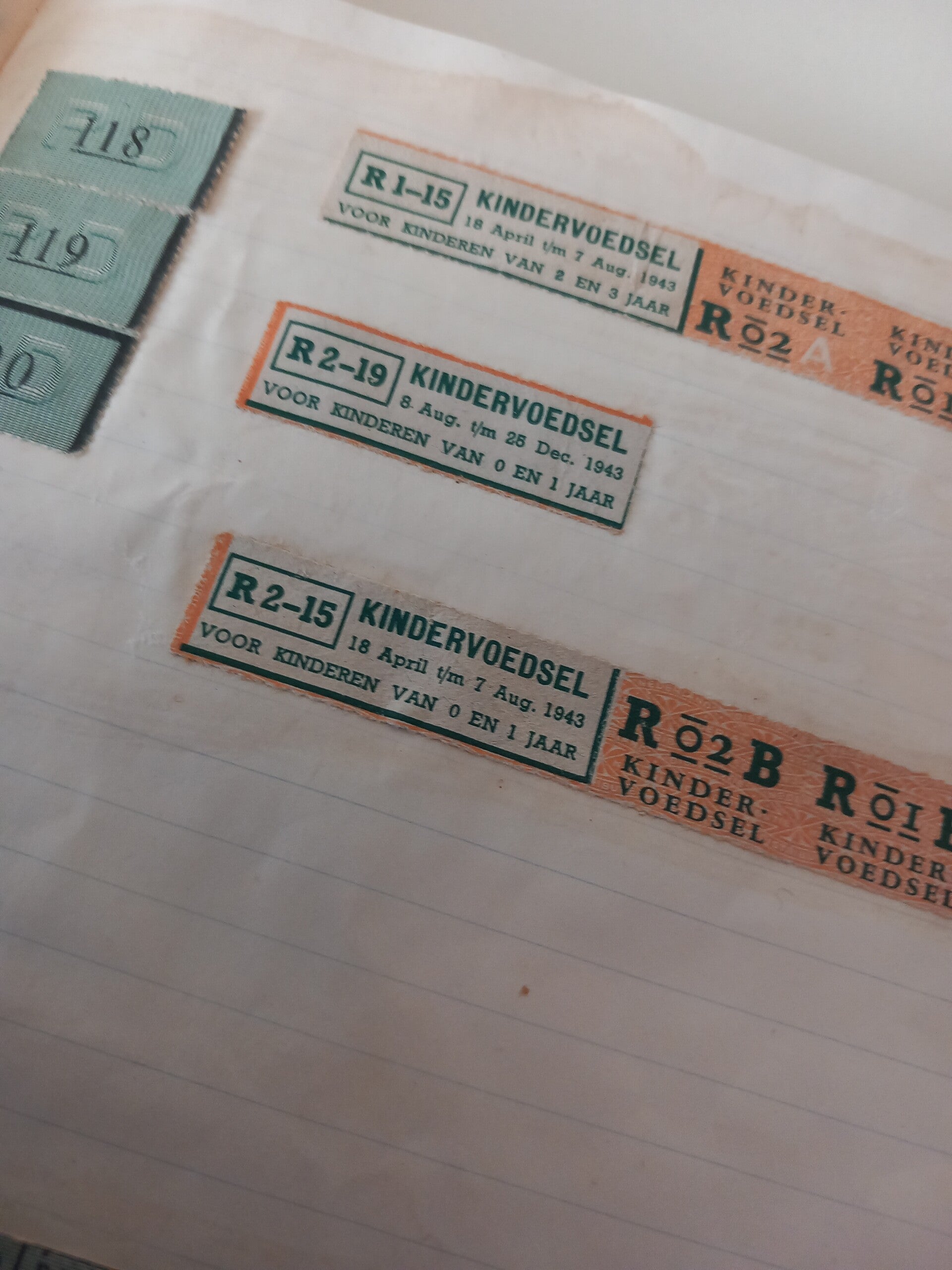 Boekje met tweede wereldoorlog voedselbonnen ingeplakt. Voorkant boekjegebruikt om kleding patronen te tekenen.