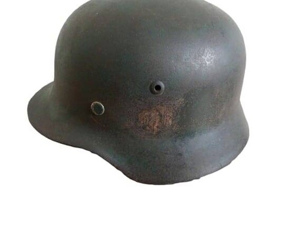Duitse M-40 helm schuurvondst Normandië dubbele decal.